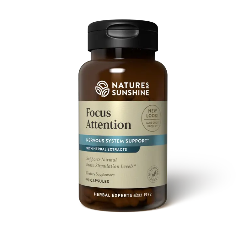 Focus Attention is a special formulation of herbal nutrients that help protect the body from undesirable side effects caused by drugs or exposure to toxic chemicals, food additives, pesticides, etc. Focus Attention combines powerful nutrients required for quiet, balanced mental activity. Slippery elm aids nutrient absorption and is used as a soothing and cleansing herb for the digestive system. The amino acid l-Glutamine supports healthy brain activity and mental ability. DMAE is a biodynamic nutrient used for memory and learning enhancement. It also quenches damaging free radicals. Lemon balm leaves have been approved by the famous German Commission E for their ability to soothe the nervous system. Grape seed extract is high in proanthocyanidins—highly active compounds that can readily neutralize brain-damaging free radicals caused by toxins or over-stimulated brain metabolism. Ginkgo biloba is well known for its support of brain and circulatory health.