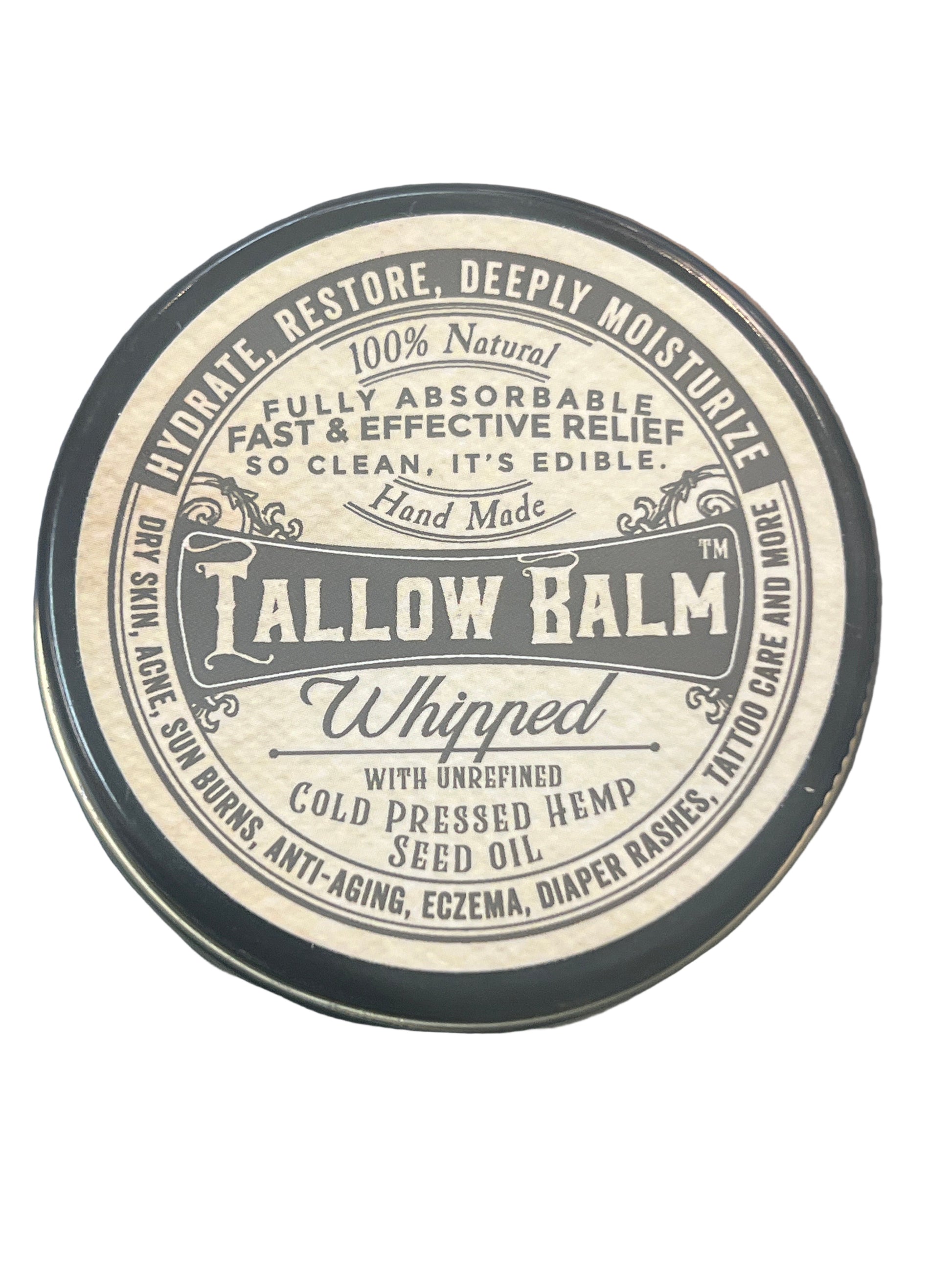 Tallow is an intense skin hydrator that is full of natural fats and minerals. It feeds your skin by retaining the skin’s natural moisture making it soft and supple. It’s non-greasy, won’t clog pores, is long-lasting and 100% natural. Infused with organic cold pressed, unrefined, hemp seed oil for extra skin loving support. Our tallow balm can be used on the face and body as an all over moisturizer and skin treatment. Use as often as needed.